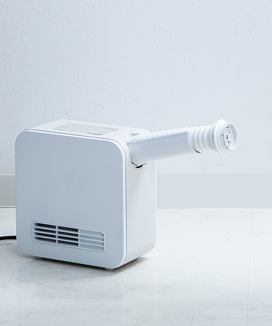 ふとん乾燥機とセラミックヒーターを1台で実現した2in1新型セラミックヒーター「ドライヒート」。冬は800Wのセラミックヒーターとして足元を暖めることができ、年中使える本格派ふとん乾燥機として、季節に応じた夏モード/冬モードを搭載し、冬はあったか、夏はカラッと快適に。ふとんの温めはもちろん、ダニアタックモード搭載でダニや花粉症などの対策にも効果的です。付属の衣類乾燥アタッチメントを装着すれば部屋干しの衣類乾燥機としても使うことができます。雨の日に濡れたシューズやブーツはくつ乾燥アタッチメントで温風乾燥できます。コンパクト設計で部屋間の移動や使いたい場所への持ち運びもラクラク。シーンに応じてふとんや衣類、くつなどを1年中清潔な状態で快適に保つことができます。