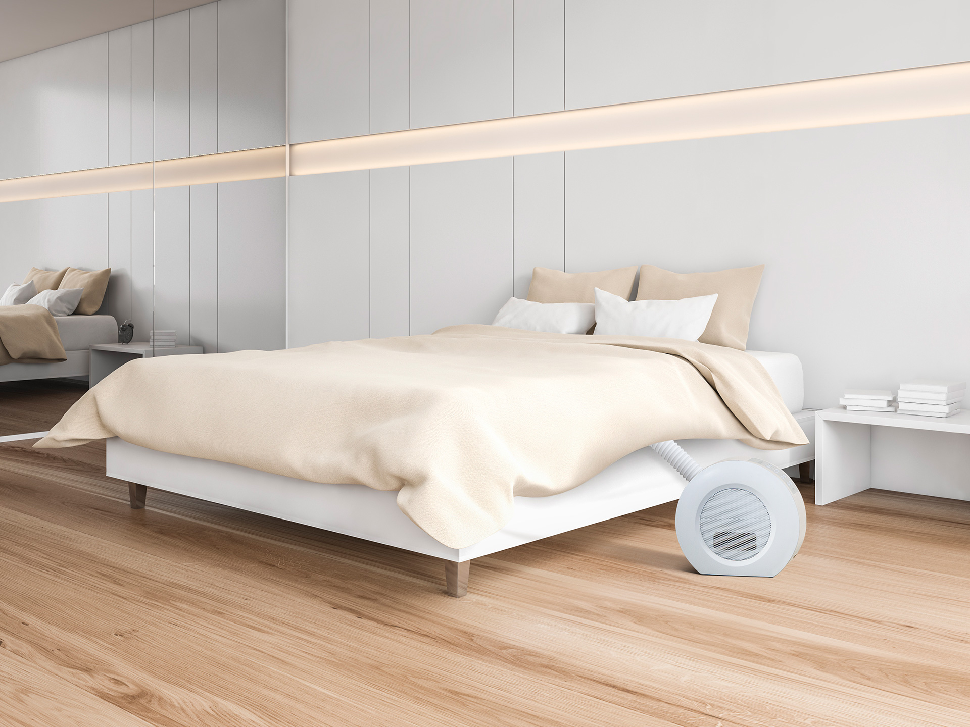 ふとん乾燥機とセラミックヒーターを1台で実現した2in1新型セラミックヒーター「ドライヒート」。冬は1000Wのセラミックヒーターとして足元を暖めることができ、年中使える本格派ふとん乾燥機として、季節に応じた夏モード/冬モードを搭載し、冬はあったか、夏はカラッと快適に。ふとんの温めはもちろん、ダニアタックモード搭載でダニや花粉症などの対策にも効果的です。付属の衣類乾燥アタッチメントを装着すれば部屋干しの衣類乾燥機としても使うことができます。雨の日に濡れたシューズやブーツはくつ乾燥アタッチメントで温風乾燥できます。コンパクト設計で部屋間の移動や使いたい場所への持ち運びもラクラク。シーンに応じてふとんや衣類、くつなどを1年中清潔な状態で快適に保つことができます。