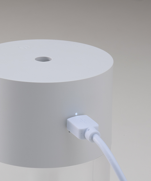 シンプルなデザインでいつでもどこでも手軽に使える充電式ポータブル加湿器「チューブ」。コードレスなので場所を選ばず使えて様々なシーンで大活躍。デスクや書斎などちょっとした場所での使用に最適です。タンクに水を入れたらスイッチオンですぐに加湿し、自分だけの潤い空間を演出してくれます。LEDライトも搭載している透明なタンクは一目で水の残量を確認できます。